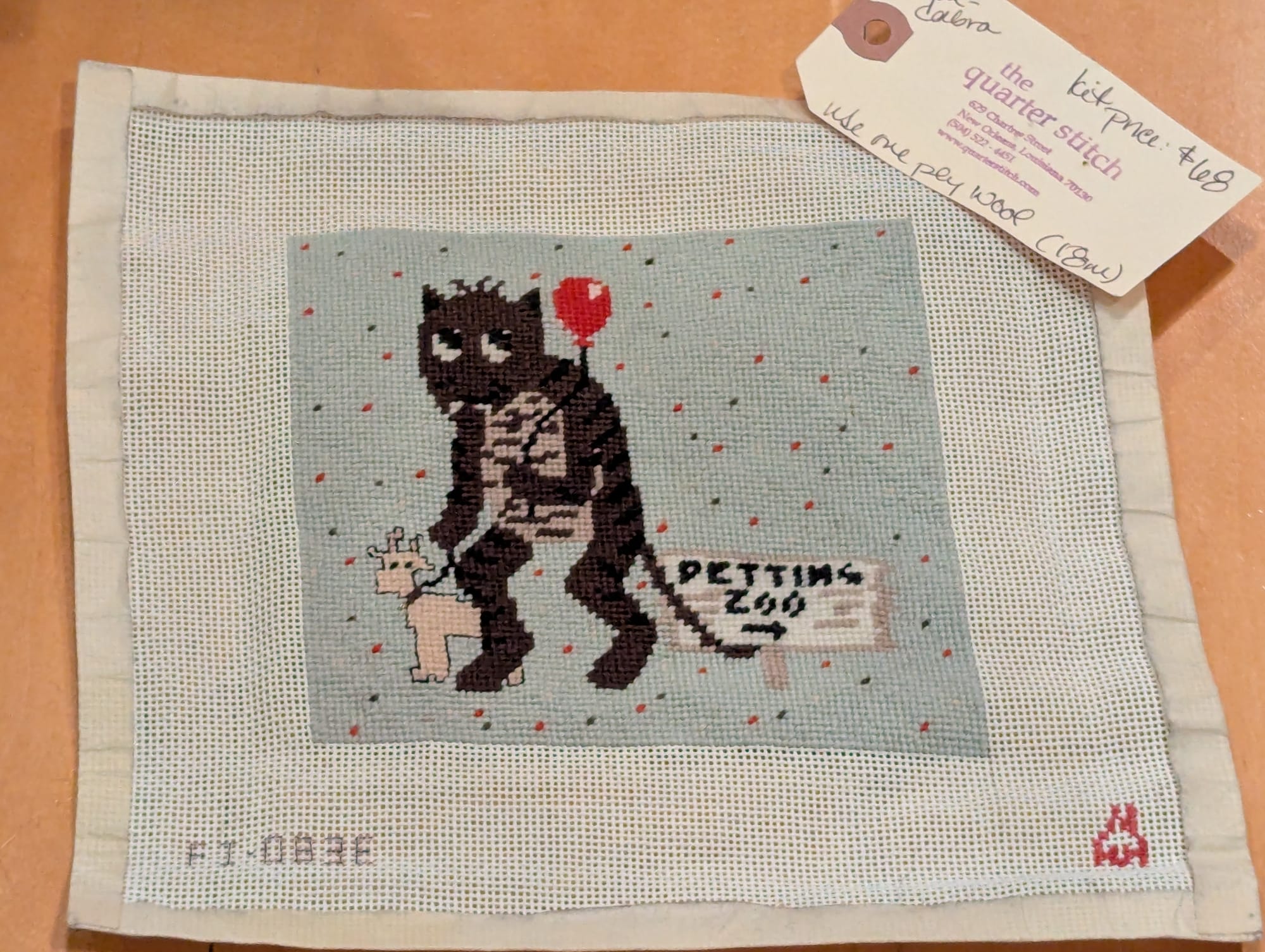- Needlepointed troll and goat